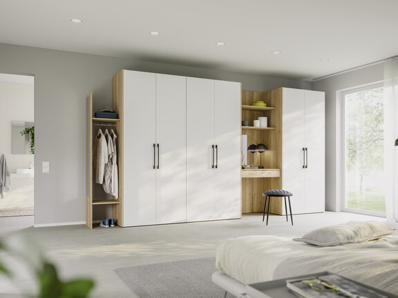 No importa si es una puerta corredera, abatible o plegable, división de ambientes, interior o sistema de armarios, le ofrecemos una libertad de diseño casi infinita. Y tenemos curiosidad por ver cómo lo llenas. Con materiales y colores, variantes de marco y superficie, paneles de puertas e interiores de armarios, puede configurar no cualquiera, sino su propio armario personal. Esperamos realizar esta pieza única para usted, porque nada es más inspirador que la diversidad.